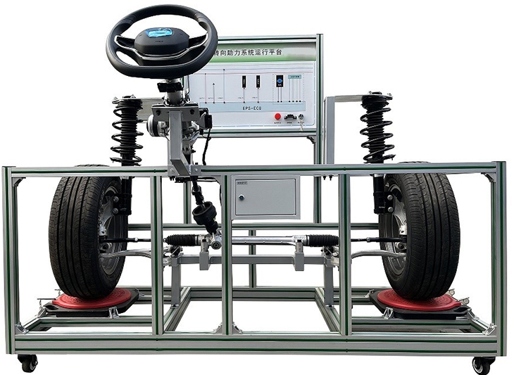 1.純電動轎車電動轉(zhuǎn)向助力EPS實訓臺選用純電動轎車原車電動轉(zhuǎn)向助力系統(tǒng),在不改變原車相對布置位置情況下安裝在臺架上,直觀認知前懸架減震,轉(zhuǎn)向管柱,齒輪齒條式方向機,電動助力轉(zhuǎn)向器,電動助力控制模塊等主要零部件;低壓控制線均為原車件,長度增加;使學員盡快認識電動轉(zhuǎn)向助力系統(tǒng)零部件組成和連接關系。