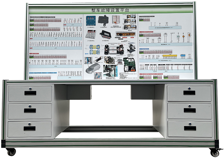 8.安裝故障模擬系統(tǒng),能實現(xiàn)低壓電路系統(tǒng)故障設置及診斷排除,進行原車配套的檢測與維修。檢測平臺便于教師設故和學生實時在線信號測量,可根據(jù)教學實際需求選用,檢測故障點大于200路,可以設置斷路、短路、虛接等故障;