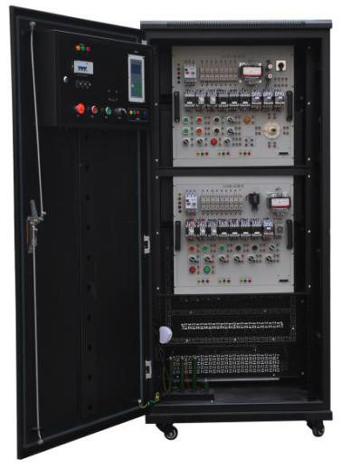 技術(shù)實訓(xùn)裝置以標(biāo)準(zhǔn)的配電柜為主柜,合理利用柜體的空間,科學(xué)地布置電器及配套實驗器材,本實用新型的目的在于克服上述現(xiàn)有技術(shù)中的不足之處,提供一種占地面積小、布局合理、結(jié)構(gòu)緊湊、功能齊全,提高考核效率的創(chuàng)新技術(shù)方案。該種維修電工教學(xué)柜式實訓(xùn)考核裝置,包括有柜架、觀察窗、儀表操作盤、電氣系統(tǒng)、電機(jī)機(jī)組組成,