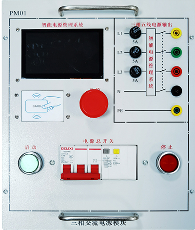 (1)提供線電壓380V交流電源、相電壓220V交流電源。交流電源輸出設(shè)有電源保護(hù)系統(tǒng),相間、線間過電流及直接短路均能自動(dòng)保護(hù)。提供三相漏電保護(hù)器作為整個(gè)實(shí)驗(yàn)平臺(tái)的電源總開關(guān)。三相輸出通過停止和啟動(dòng)按鈕控制。
