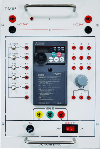 G120C0.55KW變頻器,具有過電壓、欠電壓保護(hù),變頻器、電機(jī)過溫保護(hù),接地故障保護(hù),短路保護(hù)等保護(hù)功能。接口全部引出到專業(yè)端子排上,方便學(xué)生做實(shí)驗(yàn)。