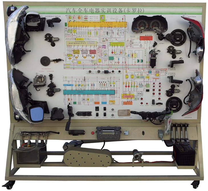 卡羅拉電器實訓(xùn)設(shè)備采用全新14款豐田卡羅拉整車電器實物為基礎(chǔ),充分展示汽車發(fā)動機防盜系統(tǒng)、儀表系統(tǒng)、燈光系統(tǒng)、雨刮系統(tǒng)、喇叭系統(tǒng)、點火系統(tǒng)、電動車窗系統(tǒng)、電動門鎖、音響系統(tǒng)、起動系統(tǒng)和充電系統(tǒng)等汽車電器各系統(tǒng)的組成結(jié)構(gòu)和工作過程。