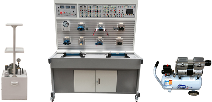 該實(shí)訓(xùn)臺(tái)為鐵質(zhì)雙層亞光密紋噴塑結(jié)構(gòu)。美觀大方,堅(jiān)固耐用,操作方便;九渲脼椋簹鈩(dòng)實(shí)訓(xùn)元件1套;PLC控制氣動(dòng)實(shí)訓(xùn)模塊1套;低噪音空壓機(jī)1臺(tái);液壓實(shí)訓(xùn)元件1套,PLC控制液壓實(shí)訓(xùn)模塊1套;液壓實(shí)訓(xùn)泵站1臺(tái)。筆記本電腦(Win7系統(tǒng) i7-10750H 1650Ti-4G獨(dú)顯)等組成。