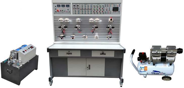 利用此套實(shí)訓(xùn)設(shè)備既可分別獨(dú)立地進(jìn)行氣動(dòng)控制、液壓控制相應(yīng)的基本回路及其應(yīng)用實(shí)訓(xùn),也可綜合地進(jìn)行相互配合的實(shí)訓(xùn):如實(shí)現(xiàn)氣-電控制,氣-液控制,電-液控制,以及氣-電-液綜合控制等。