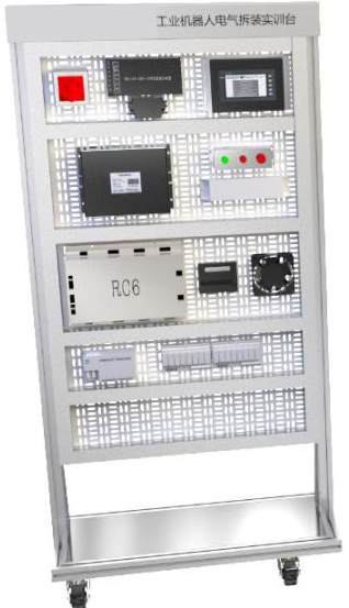 把工業(yè)級(jí)的機(jī)器人電氣柜的大部件拆散安裝在網(wǎng)孔架上,清晰體現(xiàn)機(jī)器人電氣連接原理。