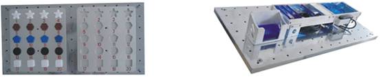圖塊搬運(yùn)模型:多形狀物料搬運(yùn):機(jī)器人通過吸盤夾具依次把一個(gè)物料板擺放好的多種形狀物料(方形、圓形、五邊形、六邊形、五角星)拾取搬運(yùn)到另一個(gè)物料板上;圓形物料搬運(yùn):機(jī)器人通過吸盤夾具依次把一個(gè)物料板擺放好的物料拾取搬運(yùn)到另一個(gè)物料板上;物料板可以水平固定到操作臺(tái),也可傾斜一點(diǎn)角度安裝到操作臺(tái);圓形物料有兩種,一種金屬錢幣形物料,一種單面錐形物料;每個(gè)物料板對(duì)應(yīng)工位都蝕刻有物料編號(hào);搬運(yùn)形式可根據(jù)要求靈活組合,形式多樣,能滿足平面、斜面、陣列、指定編號(hào)位置、多種物料混合等要求;強(qiáng)化對(duì)機(jī)器人點(diǎn)位示教技能移訓(xùn)練。