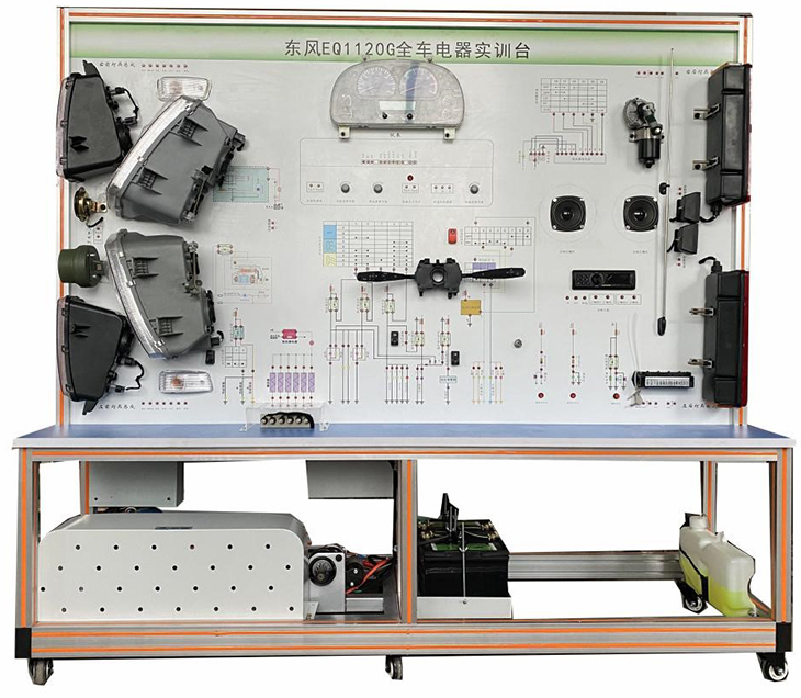該設(shè)備采用全新 東風(fēng)EQ1120GA2柴油機整車電器實物為基礎(chǔ),充分展示汽車儀表系統(tǒng)、燈光系統(tǒng)、雨刮系統(tǒng)、喇叭系統(tǒng)、發(fā)動機電器系統(tǒng)、起動系統(tǒng)和充電系統(tǒng)等汽車電器各系統(tǒng)的組成結(jié)構(gòu)和工作過程。