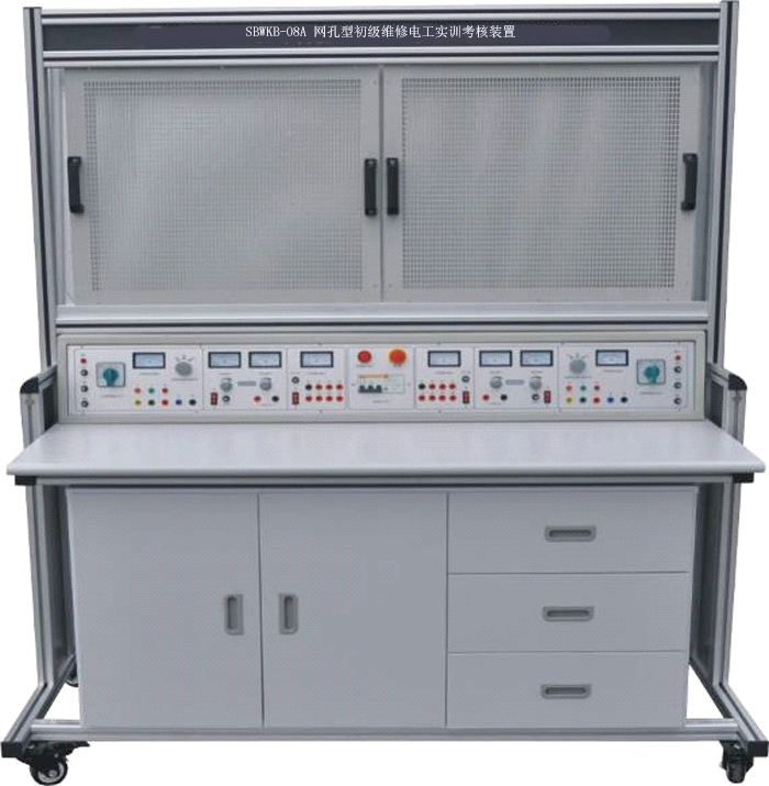 電氣安裝與維修實訓考核裝置是根據(jù)工廠電氣安裝和室內電氣安裝等維修 電工和電氣安裝工實訓鑒定要求開發(fā)的一種通用實訓平臺。 適合于各類職業(yè)院校 和技工學校維修電工、 電氣安裝工、水電工等有電氣實訓要求的相關專業(yè)的作為 公共實訓平臺使用。 采用鋼制網(wǎng)孔板和鋼制專用型材組接而成,安裝有自鎖式腳輪,方便移動和使用。裝 置表面噴塑,色彩穩(wěn)重氣派。電氣安裝與維修實訓裝置設計高度以人站在一級人字梯即可方便操作的高度,既安 全又能使使用者感受到施工現(xiàn)場環(huán)境。 橫向、 叢向寬度合適, 可以模擬現(xiàn)場線路的轉向布置。