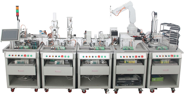 每個(gè)獨(dú)立的單元由實(shí)訓(xùn)桌、執(zhí)行機(jī)構(gòu)、電氣掛板、操作面板及控制電路等構(gòu)成。每套設(shè)備除配獨(dú)立的單元外,還配裝配桌、電腦桌、學(xué)生凳等。