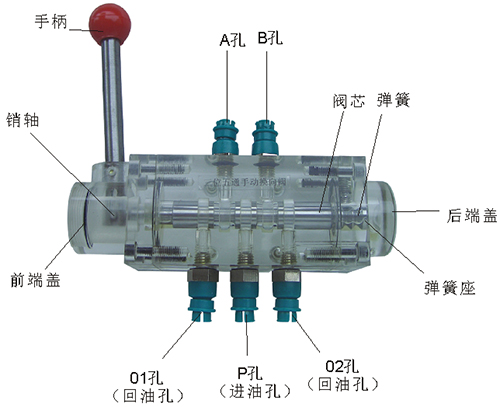 4、使用時應(yīng)注意:P孔為進油孔,O孔為回油孔(二只),A、B油孔接工作油路(如:油缸)。安裝油路時,應(yīng)先拔出油孔內(nèi)的油塞,工作時操作手柄的開度可調(diào)節(jié)流量的大小。