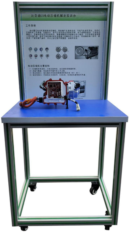 解剖的電動(dòng)車壓縮機(jī),可移動(dòng)臺(tái)架(帶原理教學(xué)板)。