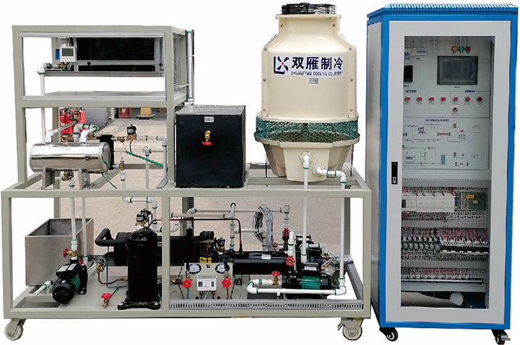 蓄冷空調制冷技術實訓裝置是利用夜間低谷負荷電力制冰儲存在蓄冰裝置中,白天融冰將所儲存冷量釋放出來,減少電網高峰時段空調用電負荷及空調系統(tǒng)裝機容量,它代表著當今世界中央空調的發(fā)展方向。該實訓裝置是根據(jù)《蓄冷空調系統(tǒng)原理、工程設計及應用》、《蓄能空調技術及其發(fā)展》等課程的實踐教學而開發(fā)設計的新型實訓設備。整個裝置采用直接蒸發(fā)制冰系統(tǒng),系統(tǒng)主要由制冷機組、蓄冰裝置、空調末端裝置、空調循環(huán)水泵、乙二醇泵、載冷劑(乙烯乙二醇水溶液)等組成。適合各院?照{工程專業(yè)、建筑環(huán)境與設備工程等專業(yè)相關課程的實訓教學。