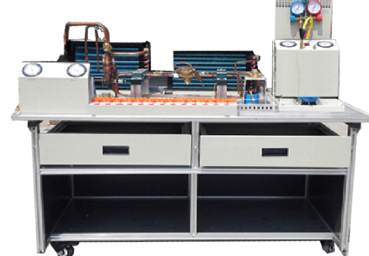 制冷與空調(diào)系統(tǒng)技能實訓(xùn)考核裝置是專門為職業(yè)院校制冷類相關(guān)專業(yè)而研制的實訓(xùn)裝置,根據(jù)制冷類行業(yè)中空調(diào)與冰箱維修技術(shù)的特點,針對空調(diào)和冰箱的電氣控制以及制冷系統(tǒng)的安裝與維修進(jìn)行設(shè)計,強(qiáng)化了學(xué)生對空調(diào)冰箱系統(tǒng)管路的安裝、電氣接線、工況調(diào)試、故障診斷與維修等綜合職業(yè)能力。裝置融合了流體力學(xué)、熱力學(xué)、傳熱學(xué)和電氣控制等技術(shù),集制冷空調(diào)系統(tǒng)安裝、冰箱系統(tǒng)安裝、制冷系統(tǒng)電接線、壓力檢漏、抽真空、充注制冷劑與運行調(diào)試于一體,包含了制冷系統(tǒng)維修的全部步驟,能滿足實訓(xùn)教學(xué)、實際工程訓(xùn)練及職業(yè)技能競賽的需要。