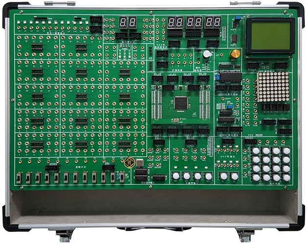 數(shù)字電路、EDA技術(shù)實驗設(shè)計系統(tǒng)由鋁木合金箱體、開關(guān)電源、常用信號源、常用模數(shù)接口、人機(jī)接口、接插式CPLD/FPGA下載板和實驗電路區(qū)等組成。其中信號源由高性能單片機(jī)產(chǎn)生,穩(wěn)定可靠。全部的實驗用信號線的連接采用高可靠杜邦線和單根2號插針線,避免接觸不良現(xiàn)象反生。擴(kuò)展設(shè)計的CPLD/FPGA開發(fā)板為用戶開展創(chuàng)新設(shè)計提供了良好的硬件平臺。本實驗箱適用于本?圃盒K须婎惡头请婎悓I(yè)《數(shù)字電子技術(shù)》、《數(shù)字系統(tǒng)設(shè)計》、《EDA技術(shù)設(shè)計》等課程的實驗、實訓(xùn)和創(chuàng)新設(shè)計,有出版社出版的配套教材。
