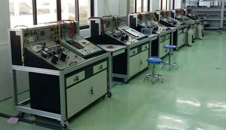 主控屏為鐵質(zhì)雙層亞光密紋噴塑結(jié)構(gòu),鋁質(zhì)面板。整個實訓(xùn)室配備一臺總電源控制柜,可以分控到下面每一臺設(shè)備的電源。