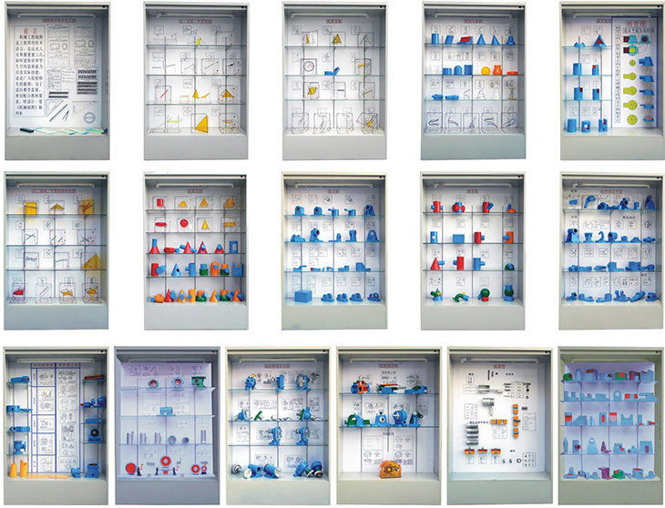 機械制圖陳列柜,適用于中專、職工中學、電視中學、職業(yè)高中機械類專業(yè)的制圖教學,亦可供其它相近專業(yè)使用或參考。為突出培養(yǎng)學生畫圖能力和看圖能力這條主線,對機械專業(yè)學生理論學習,使用范圍增強認識,加深理解,本陳列柜是一套提高教學質量的理想教學設備。