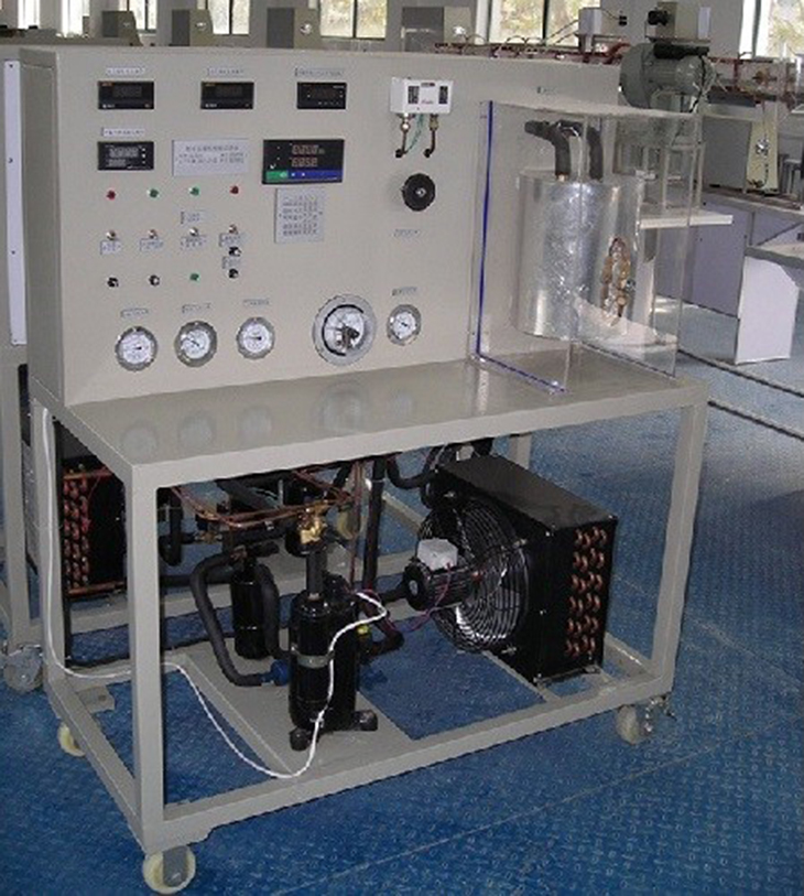 "壓縮機性能試驗臺(電量熱計法)"采用蒸汽壓縮式制冷循環(huán)系統(tǒng),配備制冷壓縮機、不銹鋼冷凝器、蒸發(fā)器等制冷系統(tǒng)真實部件,并設(shè)有彩色控制屏、制冷劑流量調(diào)節(jié)控制器,電子膨脹閥,渦輪流量計、壓力變送器、電壓、電流、功率、合相有功功率、各相無功功率、合相無功功率、各相視在功率、合相視在功率、采集器。不但能開設(shè)制冷壓縮機性能參數(shù)的測定實訓(xùn),還能進行制冷循環(huán)基本原理的演示實訓(xùn)。適用于職業(yè)院校制冷專業(yè)相關(guān)課程的教學(xué)實訓(xùn)。
