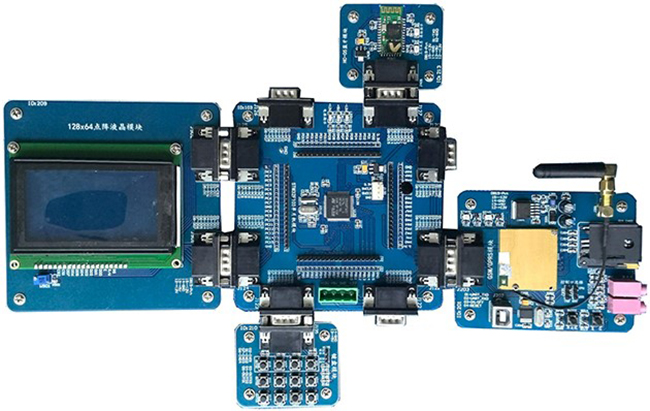 用于通信技術(shù)實訓課程。根據(jù)實用課題內(nèi)容,讓學生自己了解通信過程,自己調(diào)試,最終完成一個具有實際功能且具有實用價值的產(chǎn)品模型。如:搭建基于GSM模塊、鍵盤模塊和LCD模塊實現(xiàn)一個簡單的實用手機系統(tǒng)。