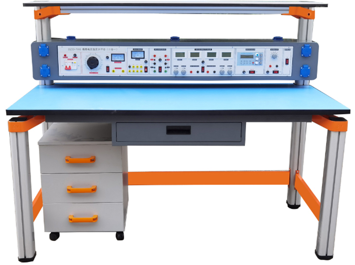 三、模數(shù)電實驗實訓(xùn)裝置基本配置及功能:模數(shù)電實驗實訓(xùn)臺主要由實訓(xùn)主機箱、儀器架、電源控制箱、獨立實訓(xùn)電路模塊、實訓(xùn)桌(含磁吸式實訓(xùn)基座)、儲存柜、學(xué)生凳等組成。