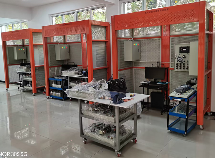 電氣安裝與維修實訓(xùn)考核裝置,可進(jìn)行電工安裝。如橋架安裝、PVC管安裝、白熾燈座、日光燈、開關(guān)、插座、配電箱、控制箱等,裝置還包含有交流異步電動機(jī)、直流電動機(jī)、步進(jìn)電機(jī)、伺服電機(jī)、溫度控制器、電偶、PLC、變頻器觸摸屏等控制與受控對象。該系統(tǒng)每個操作組配套一可移動式工具車和元件柜,便于對元件的保管和安裝施工。從根本上解決了學(xué)校在普通墻面上進(jìn)行的安裝培訓(xùn)的使用不方便、實訓(xùn)范圍窄的問題。