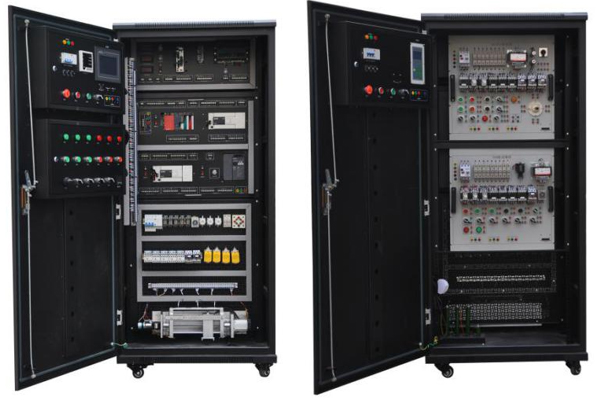1.本裝置是由控制柜、受控對(duì)象等組成一個(gè)完整系統(tǒng),具有占地面積小、操作方便、可移動(dòng)、內(nèi)部安裝有照明設(shè)施、操作面板,各控制點(diǎn)和通訊接口均引出到專(zhuān)用的接線板上,使實(shí)訓(xùn)更加便捷。