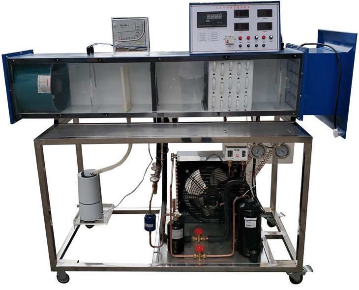 主要配置:由制冷壓縮機(jī);風(fēng)冷冷凝器;風(fēng)機(jī)盤管蒸發(fā)器;實(shí)驗(yàn)風(fēng)洞;加濕器;電加熱器;保障蒸發(fā)器被壓的引風(fēng)機(jī);進(jìn)、出風(fēng)洞的空氣參數(shù)測試系統(tǒng);控制調(diào)節(jié)系統(tǒng)等組成。