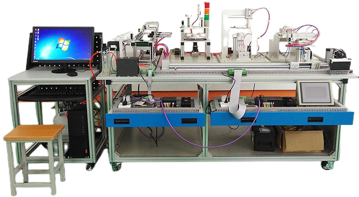 光機電氣一體化控制實訓(xùn)平臺由由鋁合金導(dǎo)軌式實訓(xùn)臺、典型的機電一體化設(shè)備的機械部件、PLC模塊、變頻器模塊、按鈕模塊、電源模塊、模擬生產(chǎn)設(shè)備實訓(xùn)模塊、接線端子排和各種傳感器、計算機等組成。整體結(jié)構(gòu)采用開放式和拆裝式,實訓(xùn)裝置用于機械部件組裝,可根據(jù)現(xiàn)有的機械部件組裝生產(chǎn)設(shè)備,也可添加機械部件組裝其他生產(chǎn)設(shè)備,使整個裝置能夠靈活的按教學(xué)或競賽要求組裝具有生產(chǎn)功能的機電一體化設(shè)備。模塊采用標(biāo)準(zhǔn)結(jié)構(gòu)和抽屜式模塊放置架,互換性強;按具有生產(chǎn)性功能和整合學(xué)習(xí)功能的原則確定模塊內(nèi)容,使教學(xué)或競賽時可方便的選擇需要的模塊。設(shè)備需完全符合電工電子全國職業(yè)技能大賽所要求,同時還要求具有可拓展功能,可以組成更加大型的生產(chǎn)模擬系統(tǒng),以配合各個用戶學(xué)校不同層次,不同專業(yè)的教學(xué)及培訓(xùn)要求。