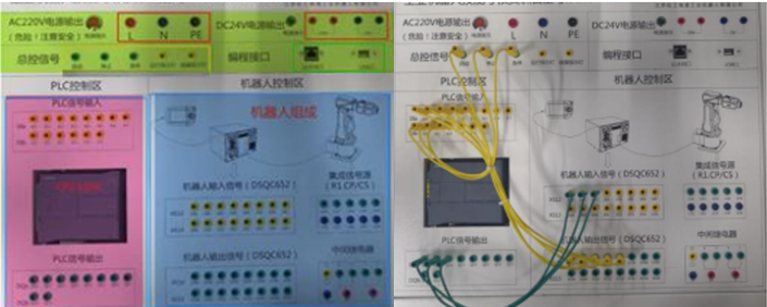 本實訓(xùn)平臺機構(gòu)設(shè)計緊湊,系統(tǒng)完全開放化,采用透明封裝設(shè)計,程序開源,使教學(xué)、實訓(xùn)更加容易上手。實訓(xùn)臺分為機器人教學(xué)應(yīng)用區(qū)、電氣控制器接線區(qū)和電腦編程區(qū),學(xué)生能夠根據(jù)電氣原理圖進行工業(yè)機器人系統(tǒng)集成技術(shù)的電氣接線,提升綜合應(yīng)用能力。