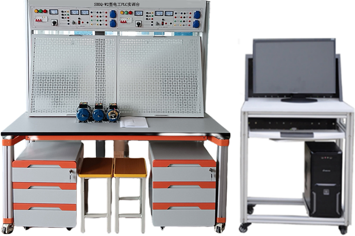 本實訓臺由實訓屏(內置電源)、實訓桌、實訓儲物柜三大部分組成。