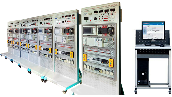 一體化網(wǎng)絡(luò)型高級(jí)維修及技師電工技能培訓(xùn)考核實(shí)訓(xùn)裝置是根據(jù)勞動(dòng)和社會(huì)保障部頒發(fā)的"工人等級(jí)標(biāo)準(zhǔn)"和"職業(yè)技能鑒定"的要求而設(shè)計(jì)的,它適用于《初級(jí)維修電工》、《中級(jí)維修電工》和《高級(jí)維修電工》教材要求的電氣控制線路,通過裝置配備的PLC可編程控制器和變頻調(diào)速器及相應(yīng)實(shí)訓(xùn)模塊的訓(xùn)練,快速掌握課程要求的實(shí)際應(yīng)用技術(shù)和操作技能,具有針對(duì)性、實(shí)用性、科學(xué)性和先進(jìn)性,它能滿足技師技術(shù)及中、高級(jí)維修電工考核大綱的要求,是各勞動(dòng)職業(yè)技能鑒定部門、大中專院校、技校中、高級(jí)維修電工技能考核的理想設(shè)備。