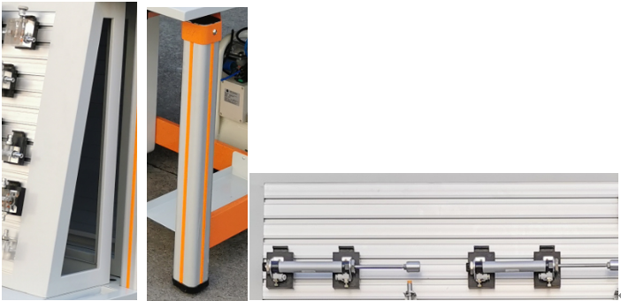 1.實驗臺架:實驗臺架規(guī)格為1600(長)*700(寬)*1760(高),實驗臺架主體結構全部采用高性能表面氧化的鋁型材及一次成型鋁壓鑄框架連接構件,連接構件采用壓鑄成型工藝(非焊接工藝),經(jīng)機加工、拋丸、噴砂、表面靜電噴涂工藝,安裝方便、快捷,用戶可自行DIY組裝。桌體立柱采用工業(yè)鋁型材成型工藝,表面氧化處理,截面尺寸:70×70mm,四面帶槽,槽寬約8mm,端部配套模具成型塑料堵頭。桌面采用25mmE1級三聚氰胺飾面板,桌面板下設支撐框架,承受力不少于200kg。配備儲存柜,存放實訓掛箱等,儲存柜底部4只高強度萬向可制動PU腳輪,方便移動。實驗臺架整體簡約不簡單,高端大氣,符合現(xiàn)代化產品審美和發(fā)展趨勢。